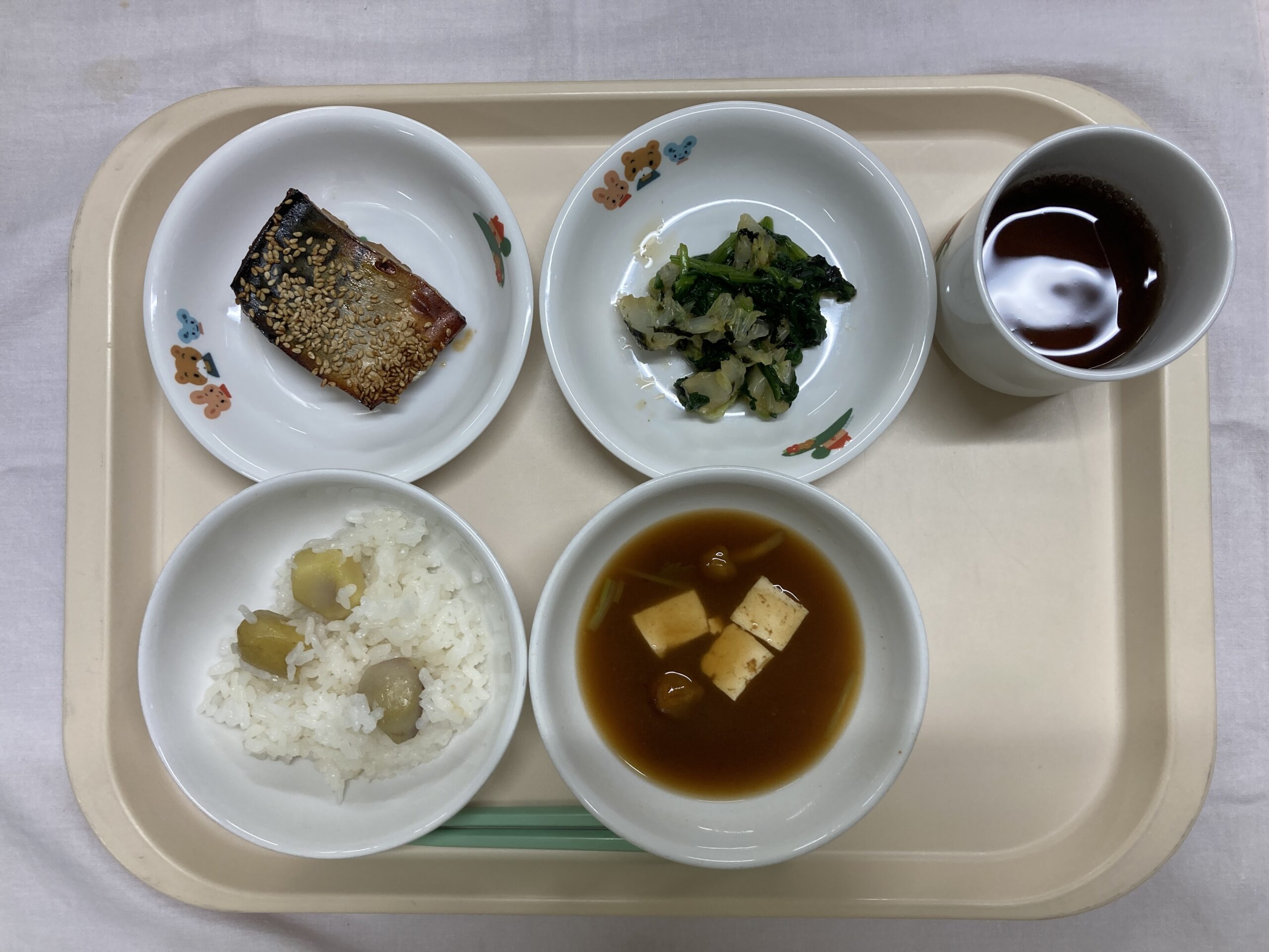 ・ごはん ・サバの南部焼き ・ほうれん草の和え物 ・豆腐となめこの味噌汁
