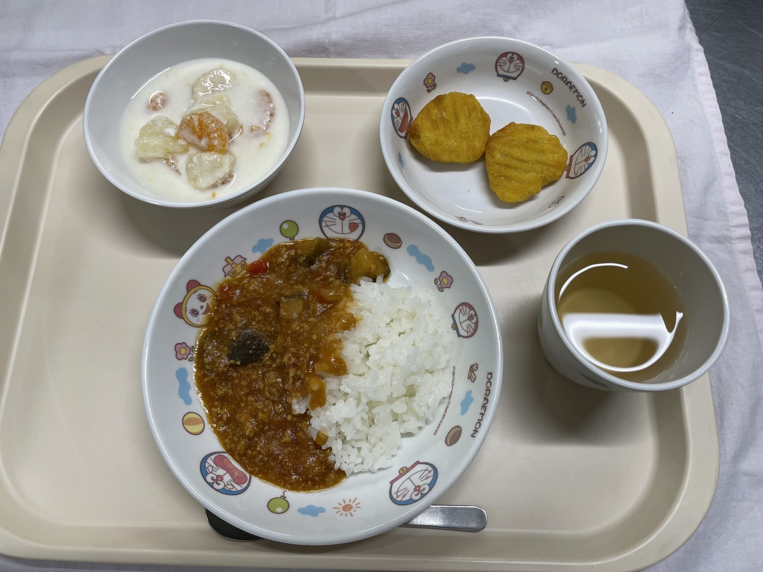 ・夏野菜カレー ・チキンナゲット ・フルーツヨーグルト