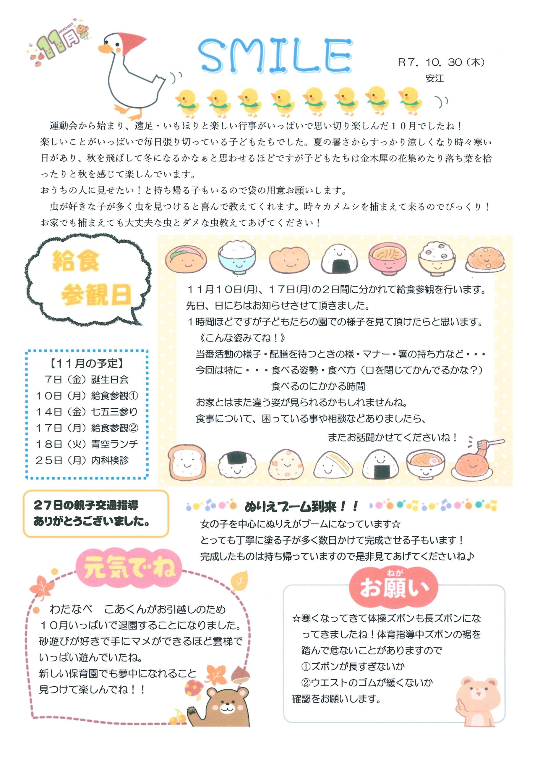 11月 あひるぐみだより