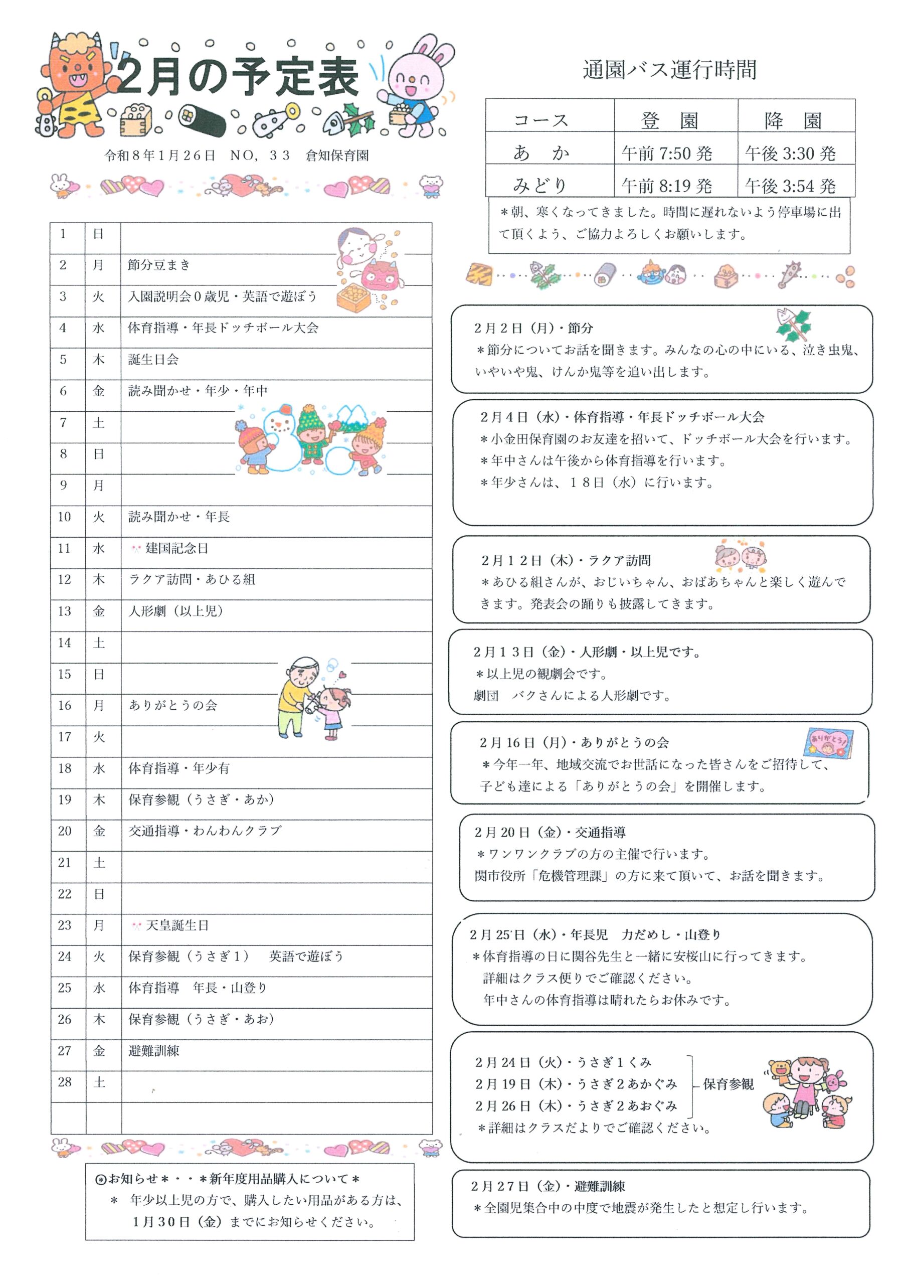 集団生活を経験しいろいろな行事や人・物とかかわる中心身ともに調和よく豊かな情操を持ち主体的にたくましく行動できる子を願い保育します。