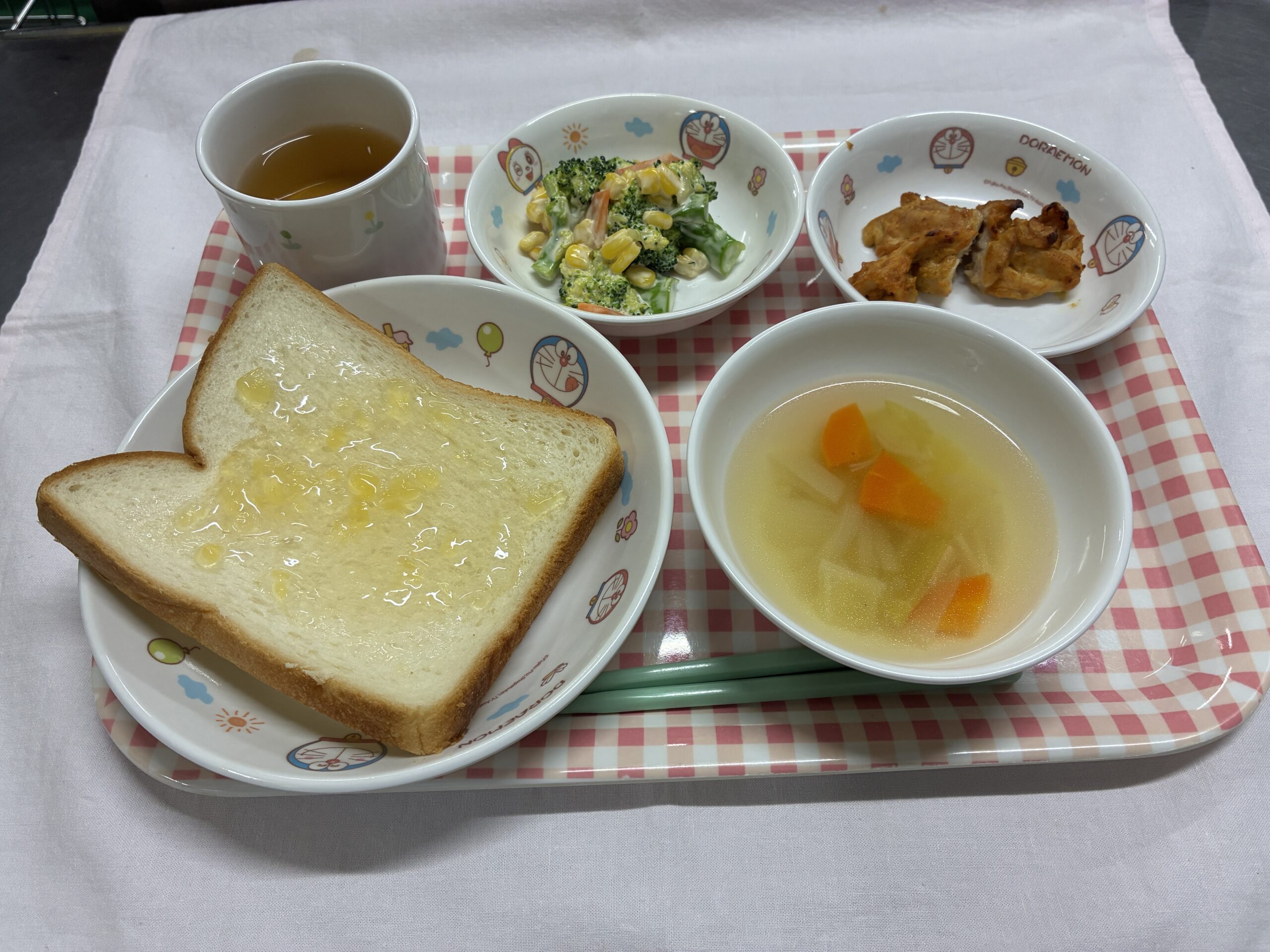 ~ラッキースターの日~ ・食パン(りんごジャム) ・タンドリーチキン ・ブロッコリーのサラダ ・★野菜スープ