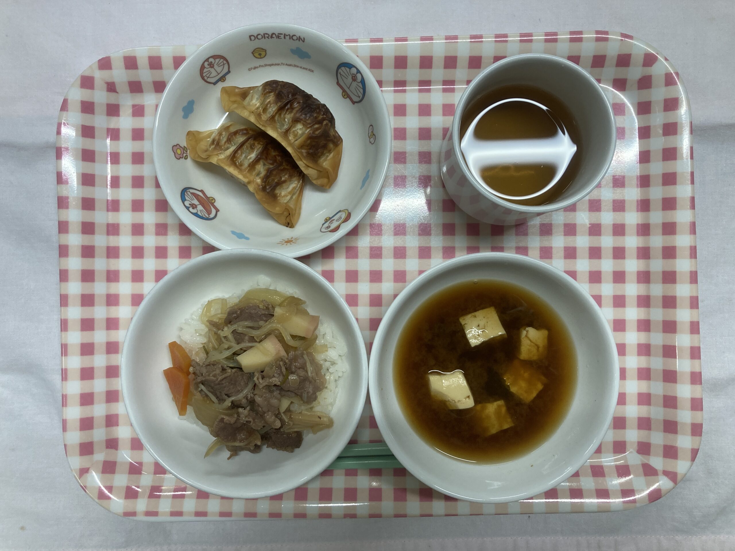 ・牛丼 ・焼き餃子 ・豆腐とわかめの味噌汁