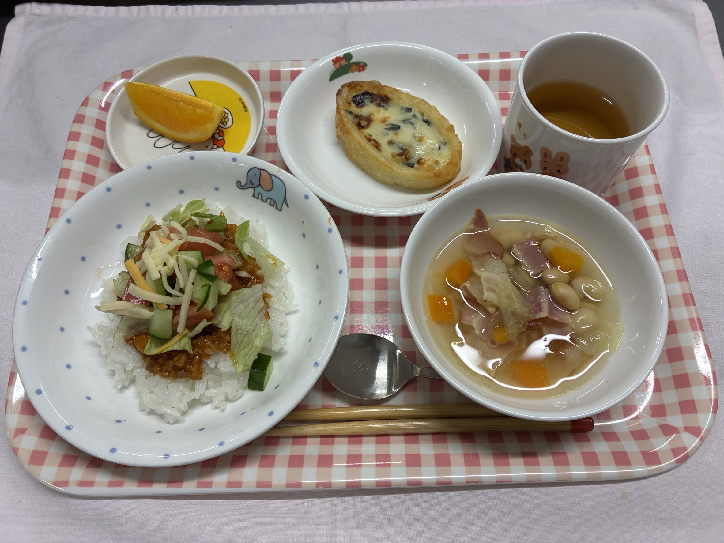 ・タコライス ・カップグラタン ・ビーンズスープ ・オレンジ
