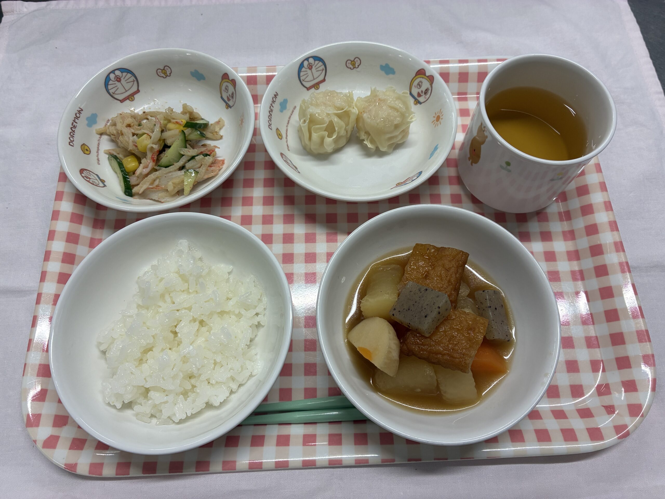 ご飯 ・関東風煮 ・切り干し大根のサラダ ・蒸ししゅうまい ・バナナ