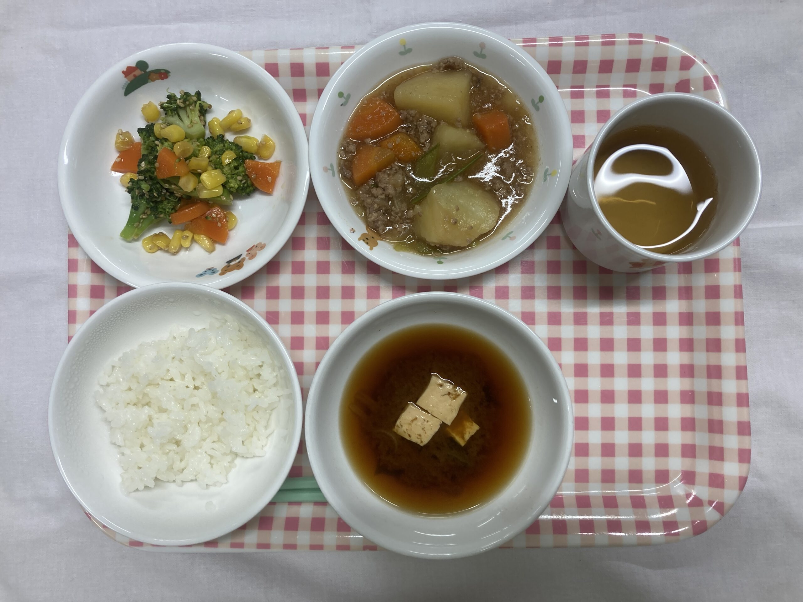 ・ごはん ・じゃがいものそぼろ煮 ・ブロッコリーの中華和え ・豆腐とわかめの味噌汁