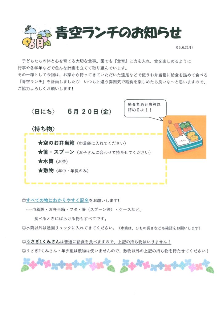 少し先になりますが 空っぽのお弁当の持参 […]