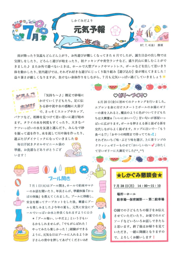 今月のおたより