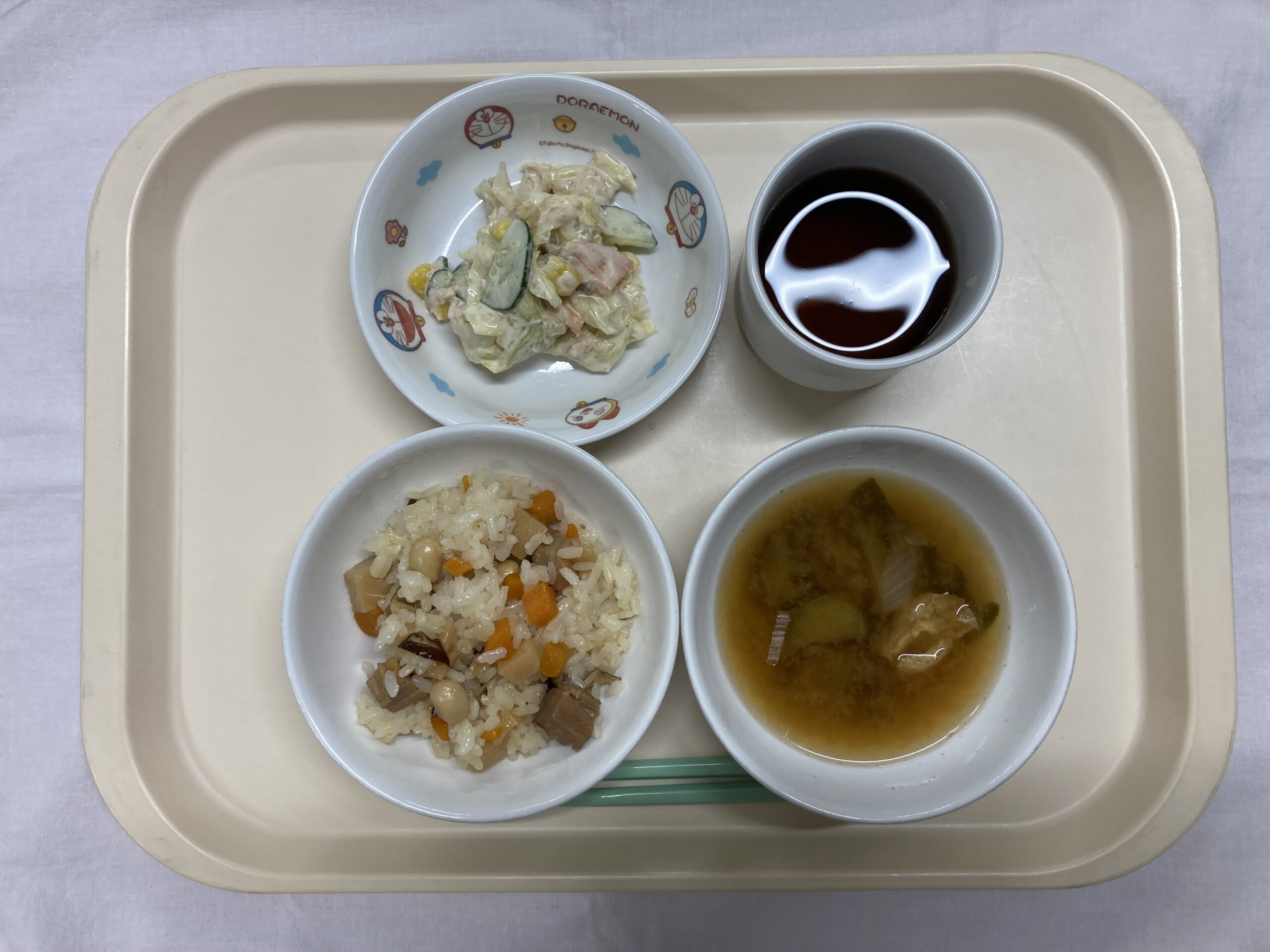 ・かみかみライス ・キャベツのサラダ ・茄子の味噌汁