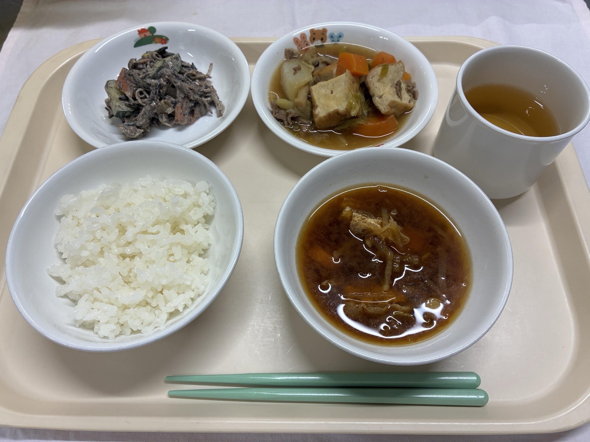 ♪給食参観日♪ ・ごはん ・生揚げの好き煮 ・ひじきの和風サラダ ・切り干し大根の味噌汁