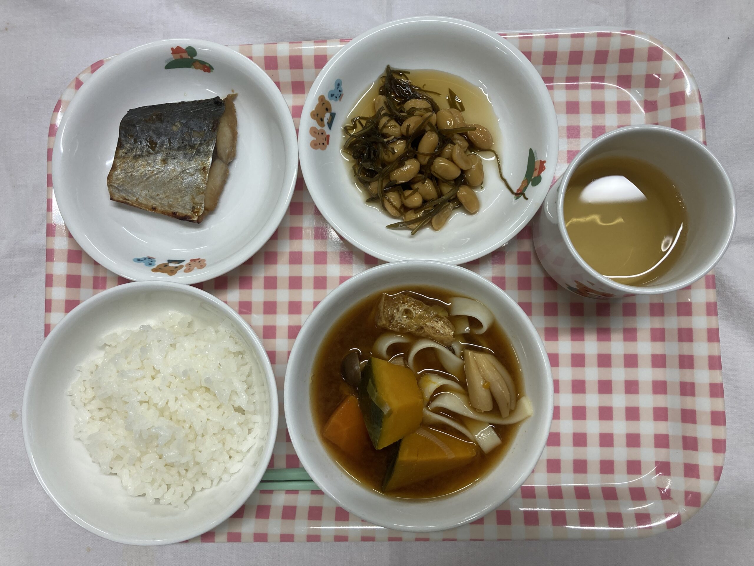 ・ごはん ・さわらの照り焼き ・昆布豆 ・ほうとう汁