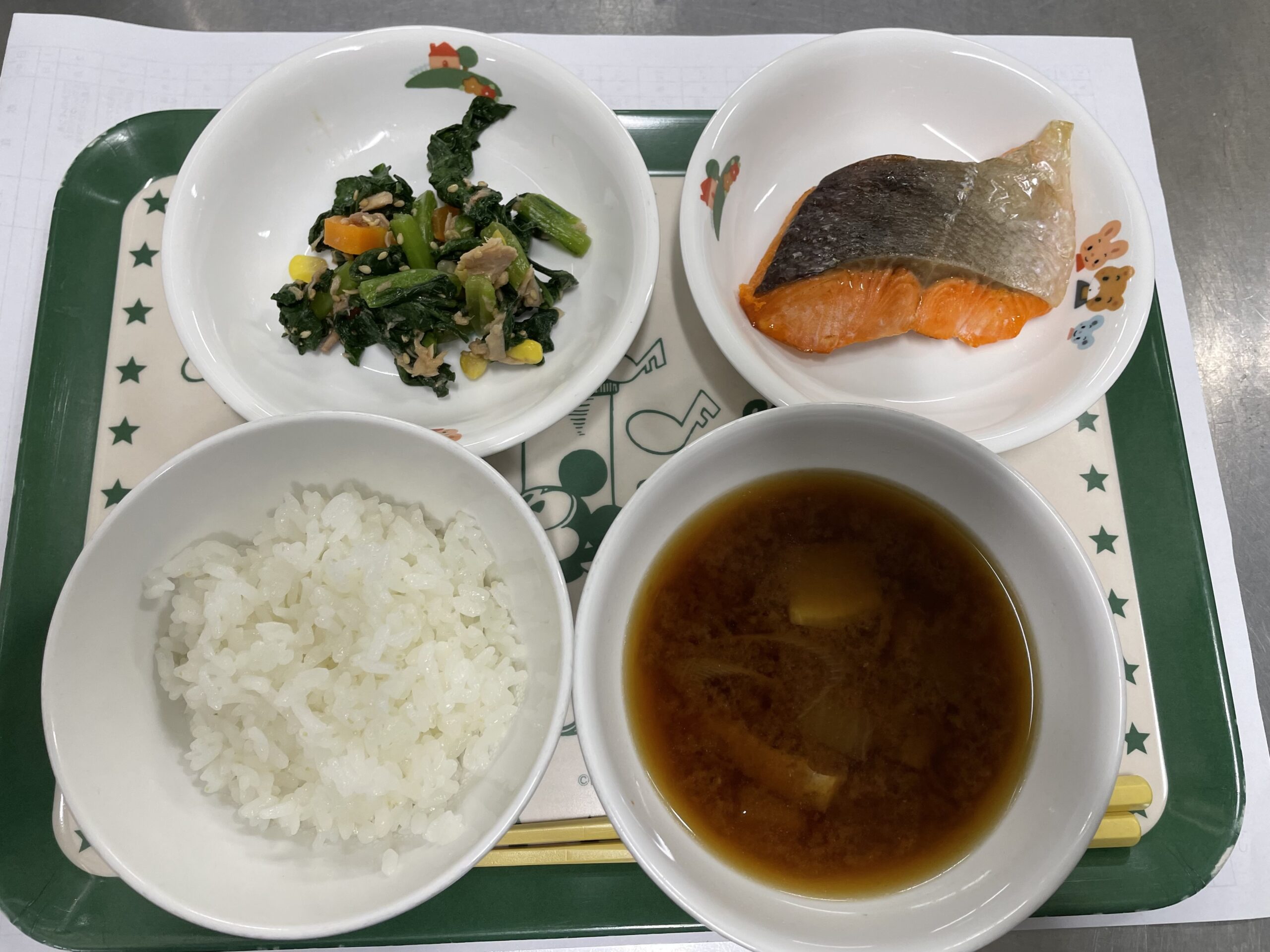 ・ごはん ・鮭の塩焼き ・小松菜のごま和え ・大根の味噌汁