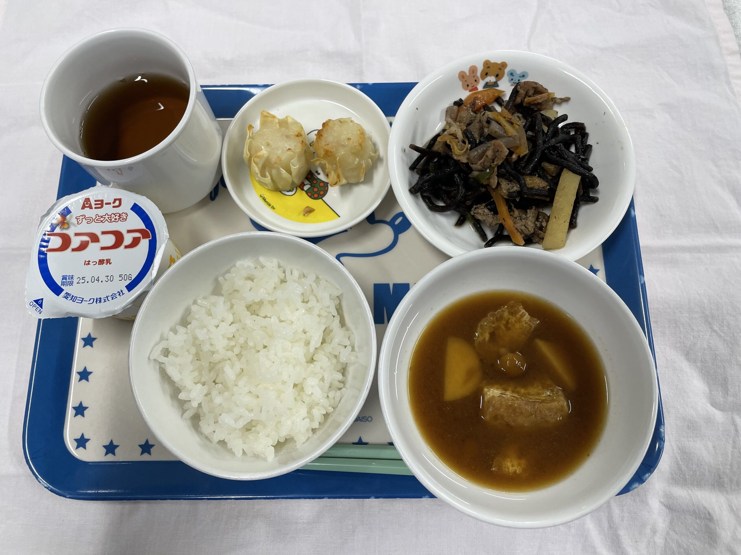 ・ごはん ・栄養ひじき ・しゅうまい ・なめこと里芋の味噌汁 ・ヨーグルト