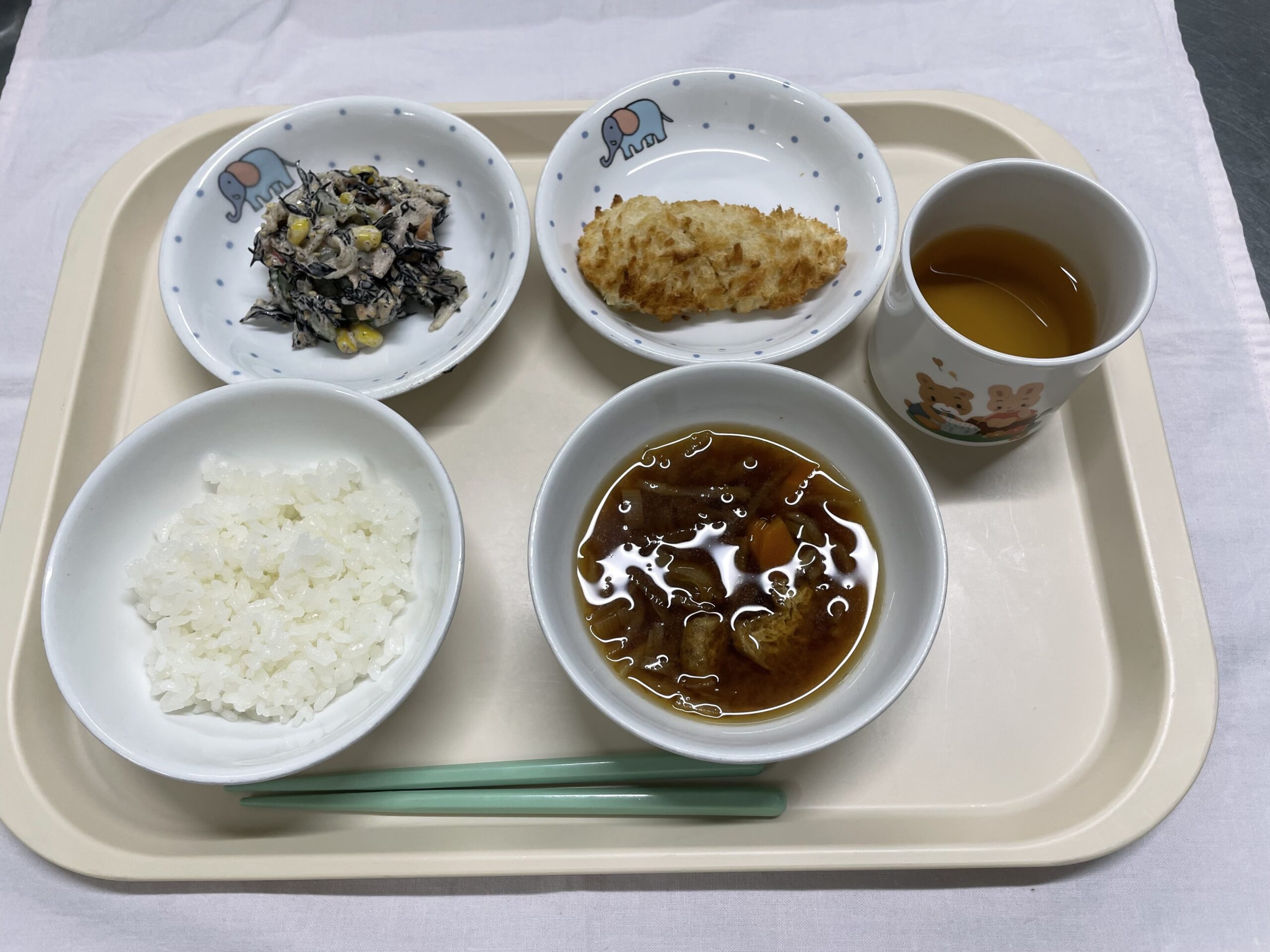 ・ごはん ・ささみカツ ・ひじきの和風サラダ ・切干大根の味噌汁