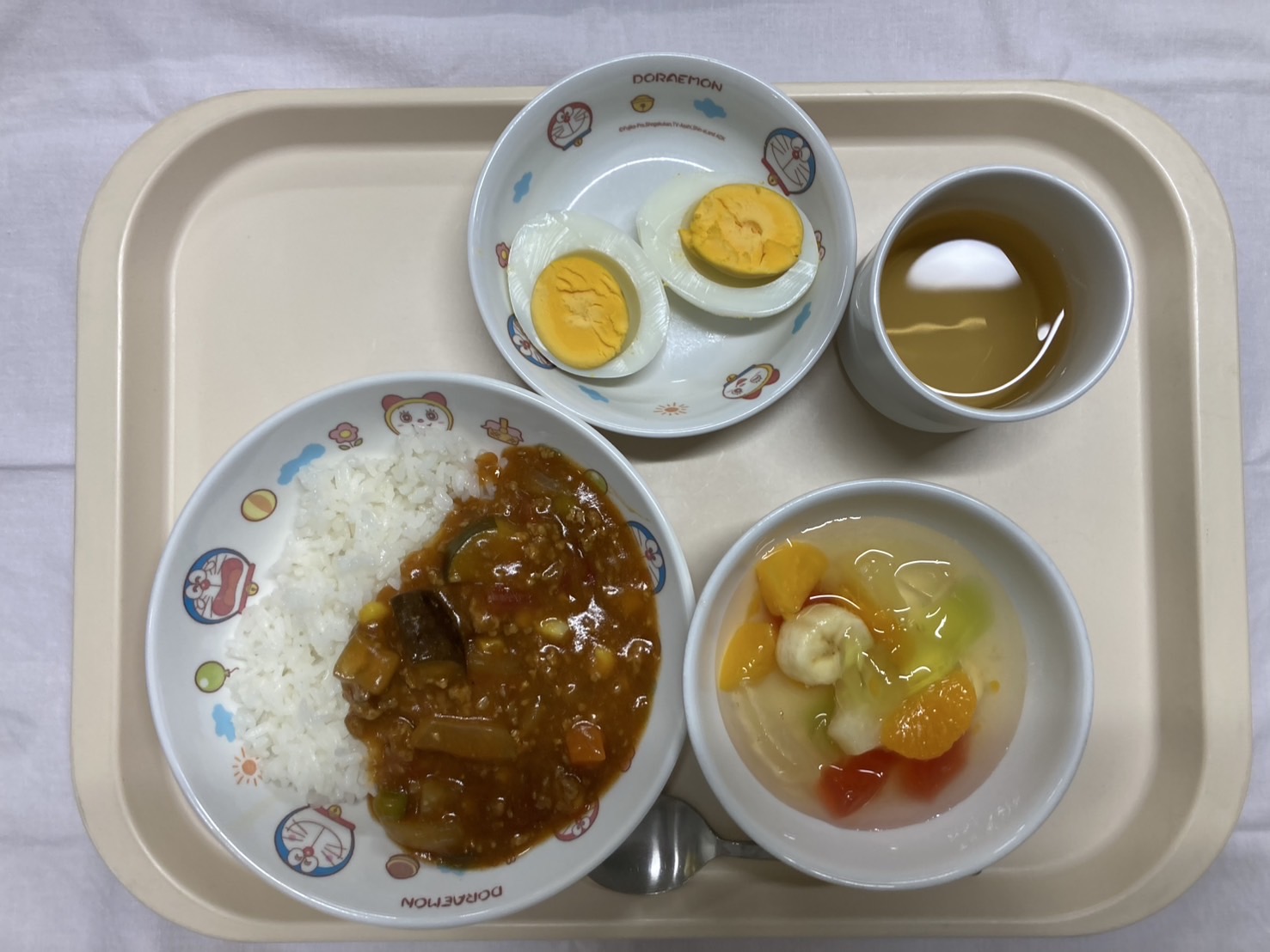 ・夏野菜のキーマカレー ・ゆで卵 ・ゼリーポンチ