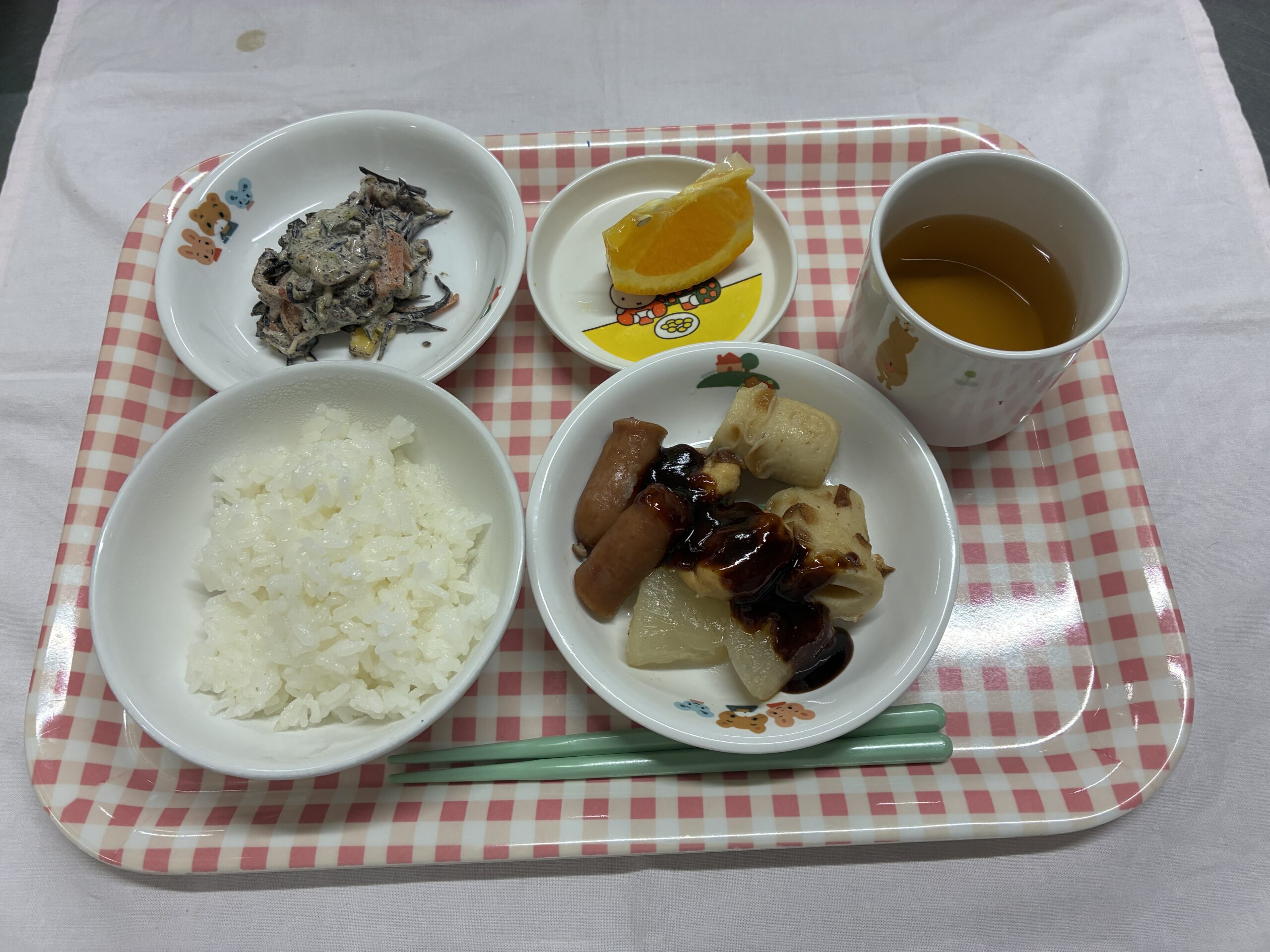 ・ご飯 ・味噌おでん ・ひじきの和布サラダ ・オレンジ