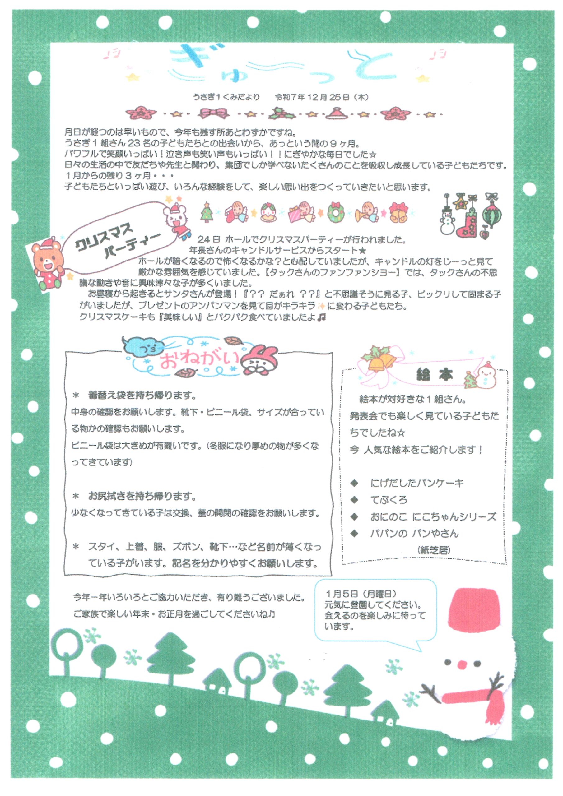 年末 うさぎ1くみだより