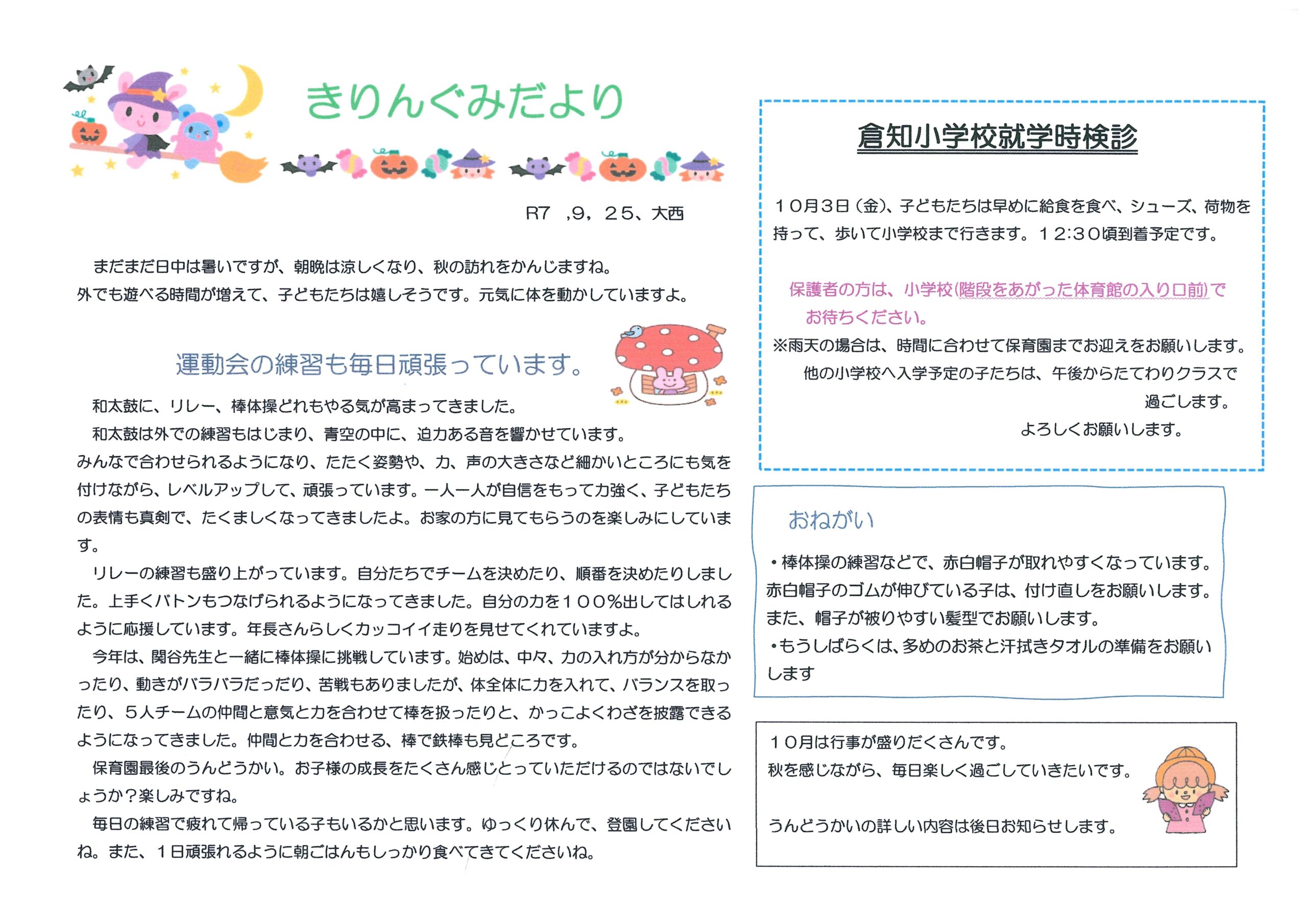 10月 きりんぐみだより
