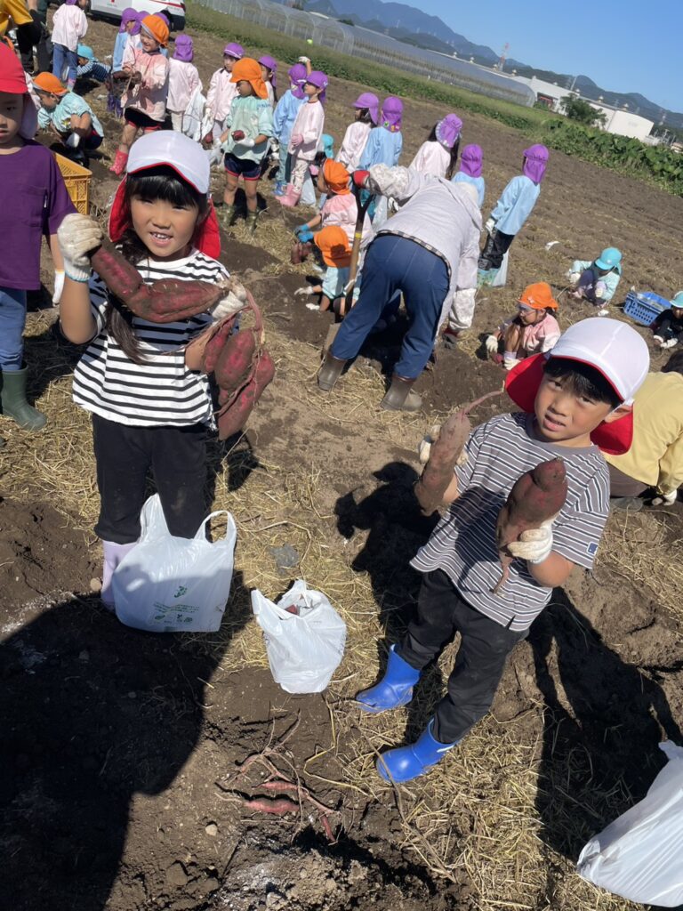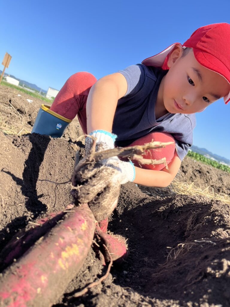 お芋を見つけてうれしそう!!一生懸命に掘りました。