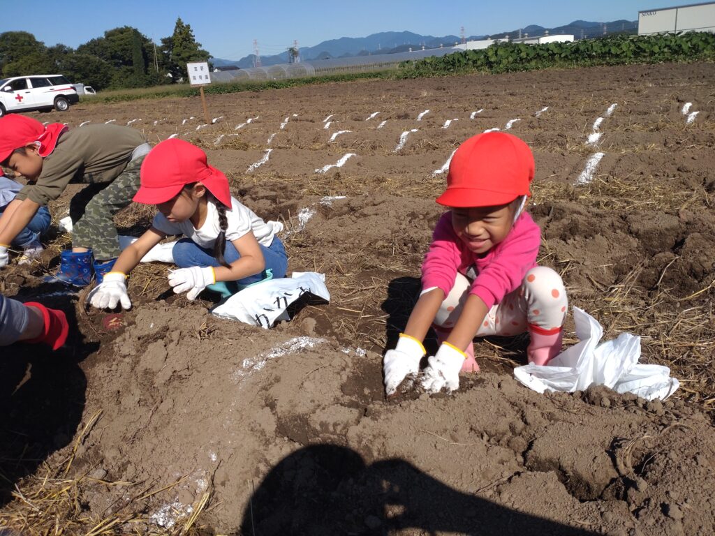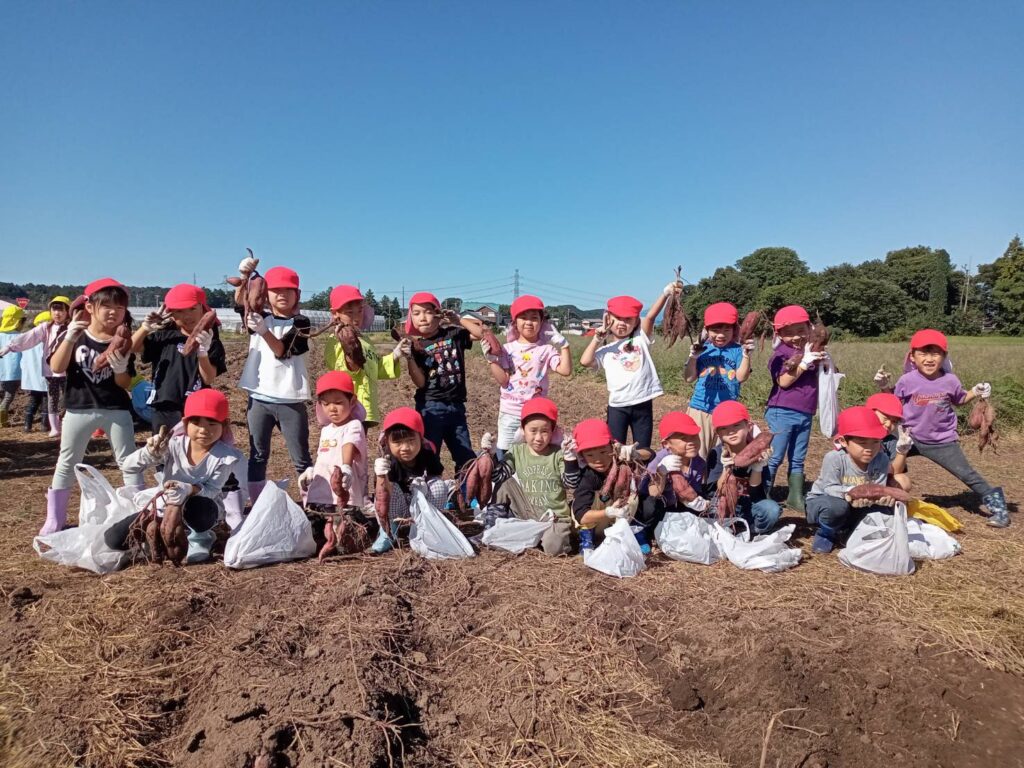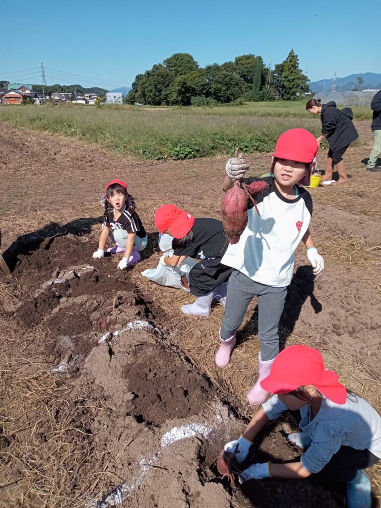 晴天の中での芋ほりとなりました。ボランティアのおじいさんおばあさんに手伝ってもらいながらたくさんの芋を掘ることができました。