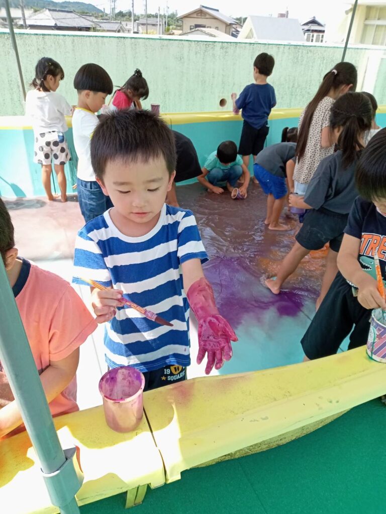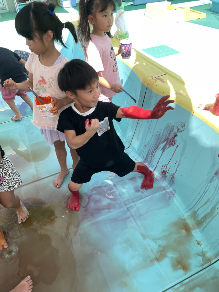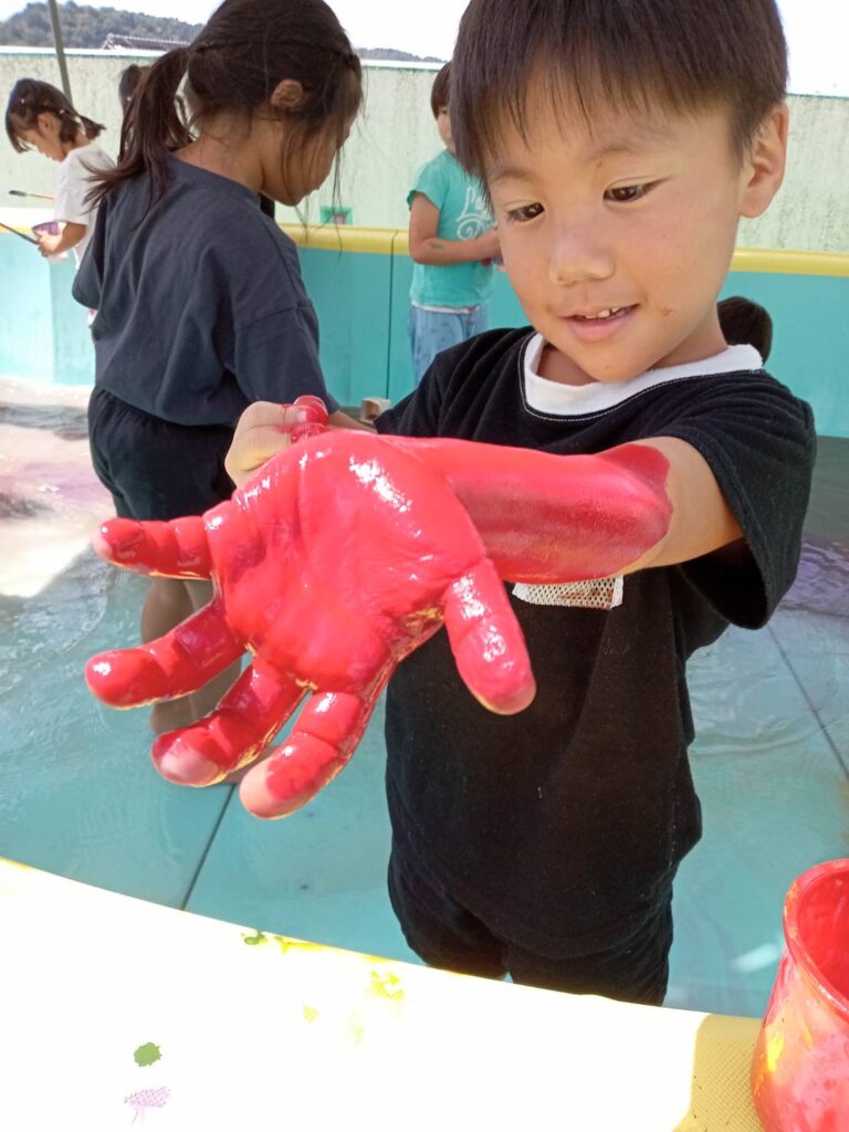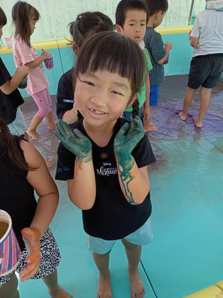 全身で絵具を楽しむことができてニコニコな子どもたちでした✨