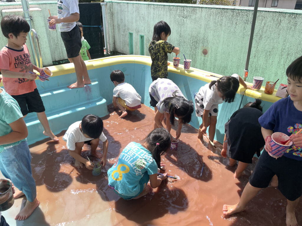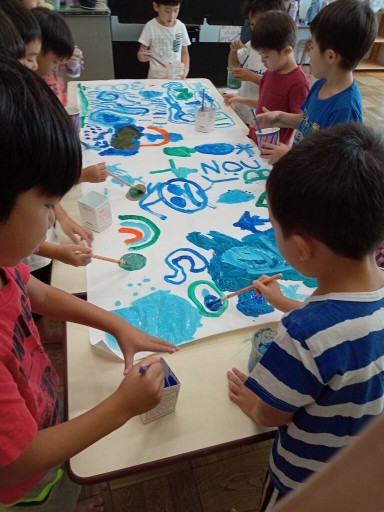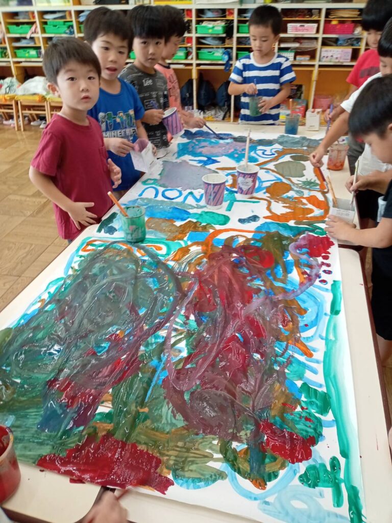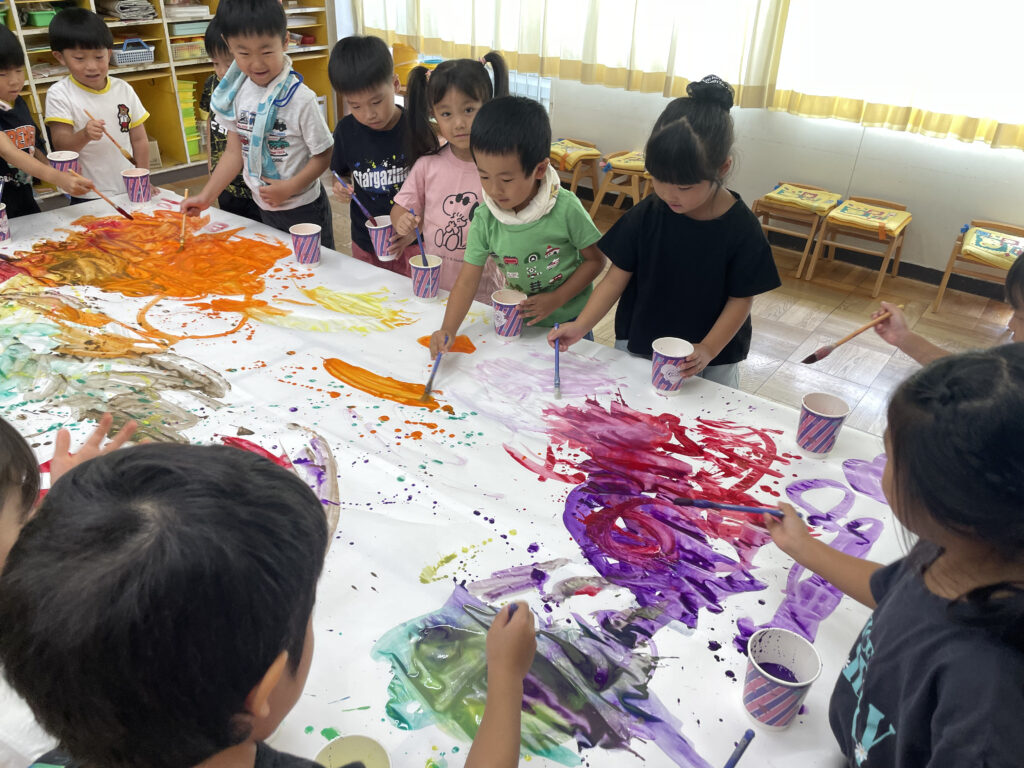 全身で絵具を楽しむことができてニコニコな子どもたちでした✨