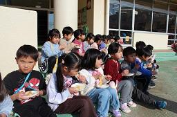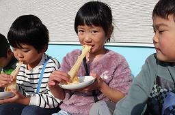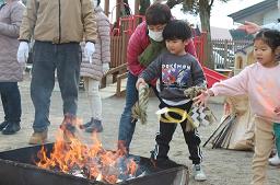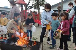 園庭で火を焚きお飾りを燃やし、その火でお餅を焼きましたよ。
