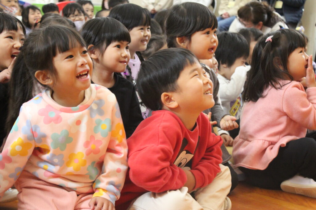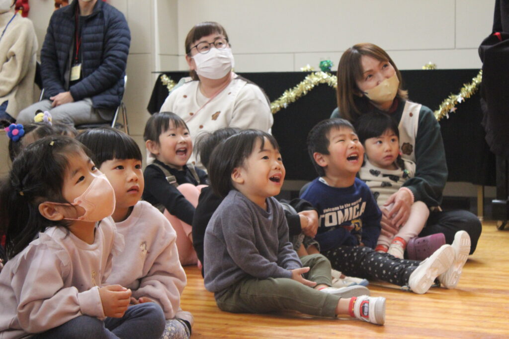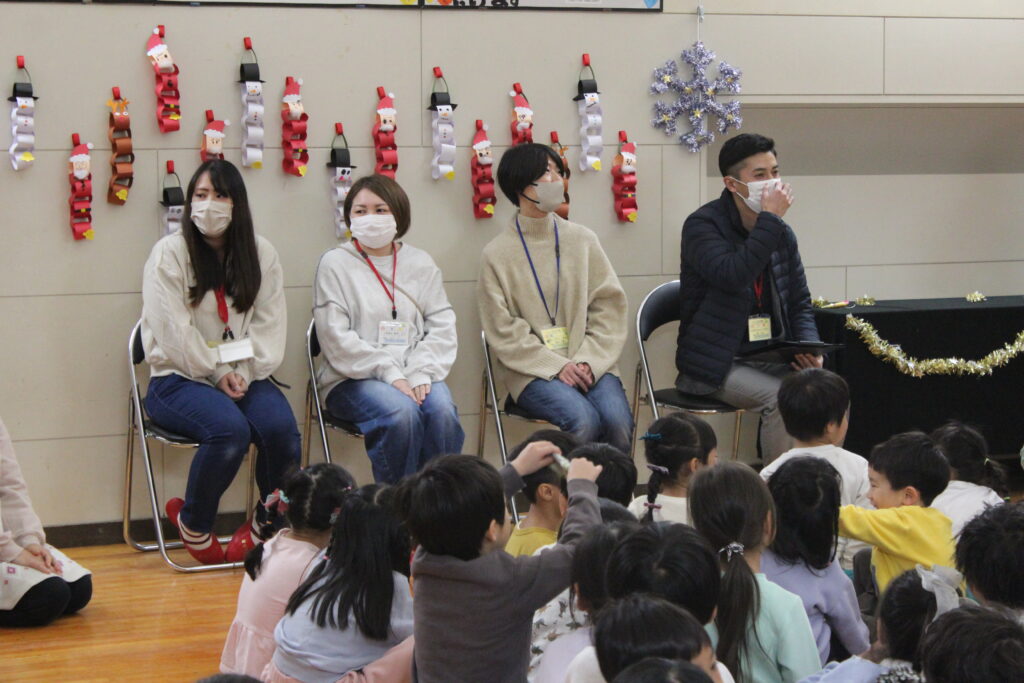 今日のクリスマスパーティー☆は保護者会の方が 「タックのファン ファン ショー」を計画してくださいました。 始まる前 みんな ワクワクでした。