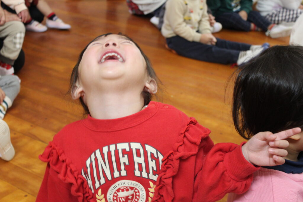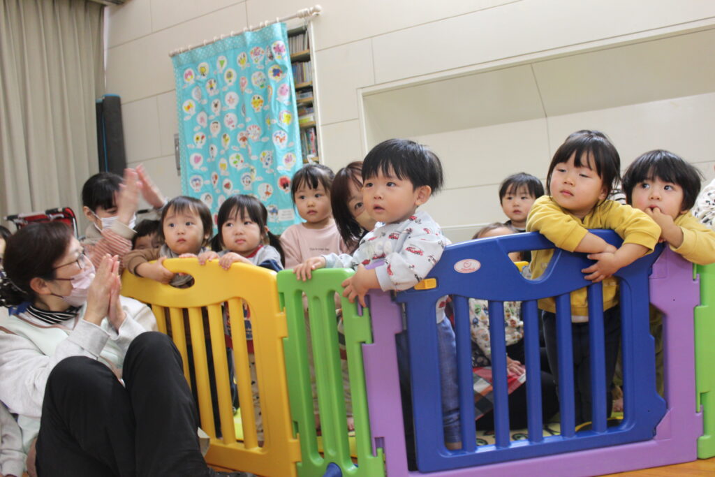 未満児クラスのお友達も 楽しめました。見てください! この表情! いい笑顔です。